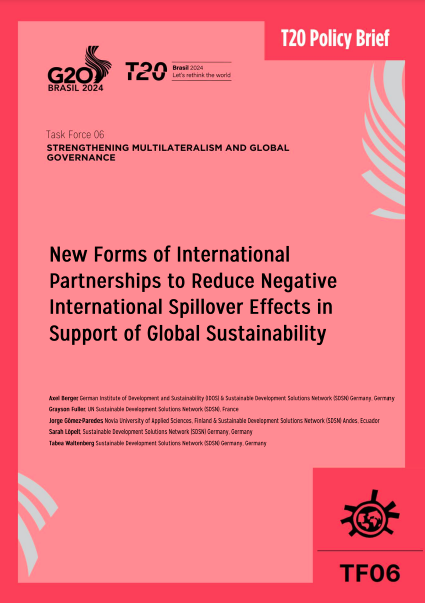 We collaborate with various partners - including the Deutsche Gesellschaft für Internationale Zusammenarbeit (GIZ) GmbH on behalf of the German Federal Ministry for Economic Cooperation and Development (BMZ), the Center for Global Commons at the University of Tokyo, the University of Sydney and Yale University among others - to advance research on spillover data and policies in the context of the SDGs and Paris Climate Agreement.