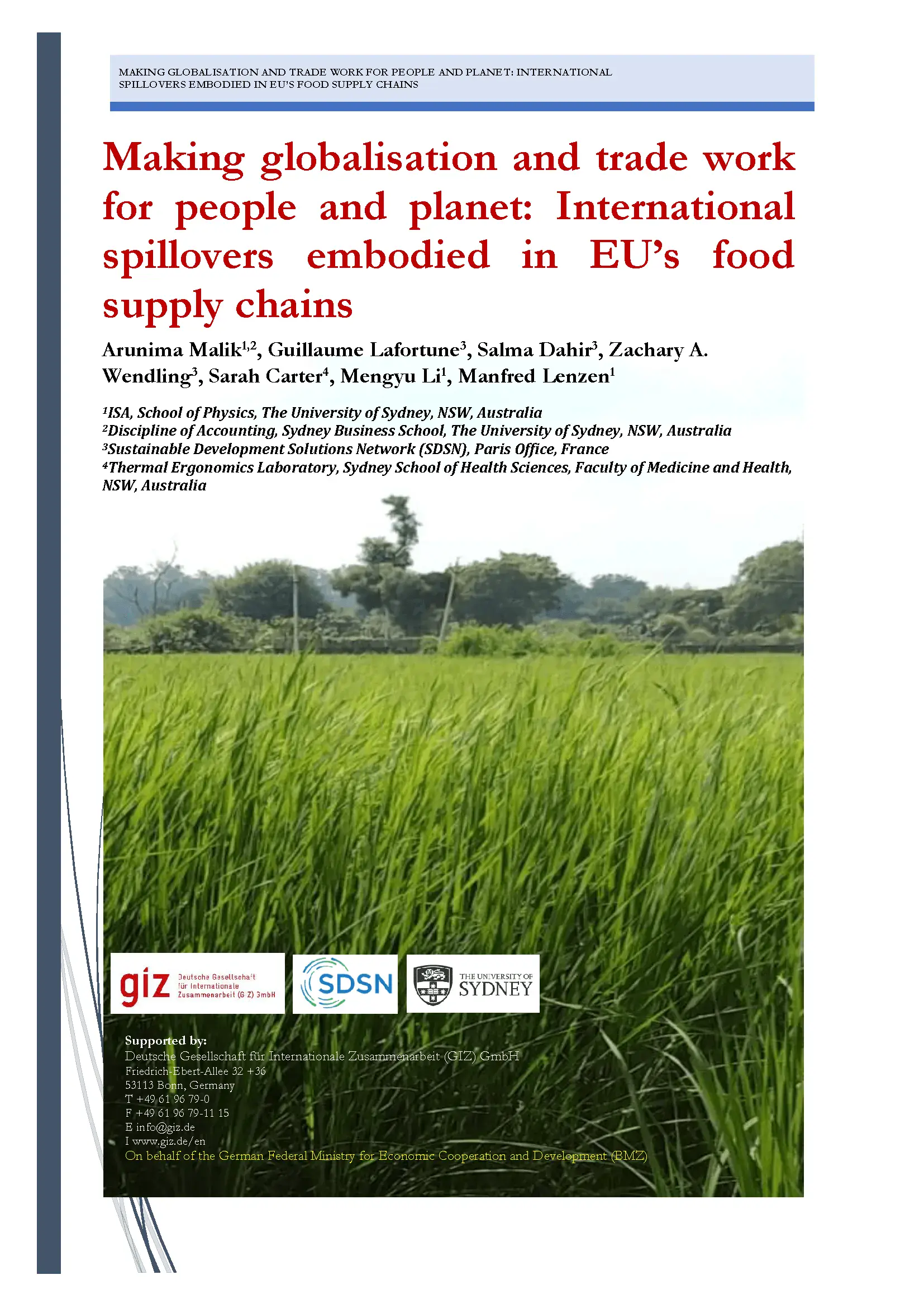 We collaborate with various partners - including the Deutsche Gesellschaft für Internationale Zusammenarbeit (GIZ) GmbH on behalf of the German Federal Ministry for Economic Cooperation and Development (BMZ), the Center for Global Commons at the University of Tokyo, the University of Sydney and Yale University among others - to advance research on spillover data and policies in the context of the SDGs and Paris Climate Agreement.